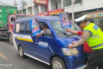 BATUBARA – Personel Satlantas Polres Batubara melaksanakan kegiatan pembagian stiker himbauan keselamatan kepada pengemudi truk dan sepeda motor dalam rangka Operasi Keselamatan Toba 2026. Kegiatan ini berlangsung di Jalinsum Medan–Rantau Prapat, Jum...