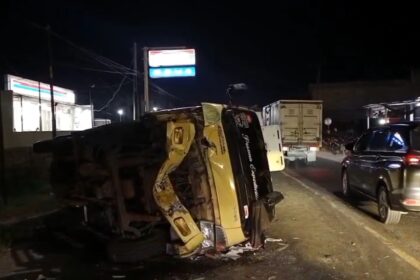 BATUBARA – Satu unit truk terguling di Jalan Lintas Sumatera (Jalinsum), tepatnya di Kecamatan Air Putih, Kabupaten Batubara, pada Kamis (5/2/2026) malam. Tidak ada korban jiwa dalam insiden tersebut,...