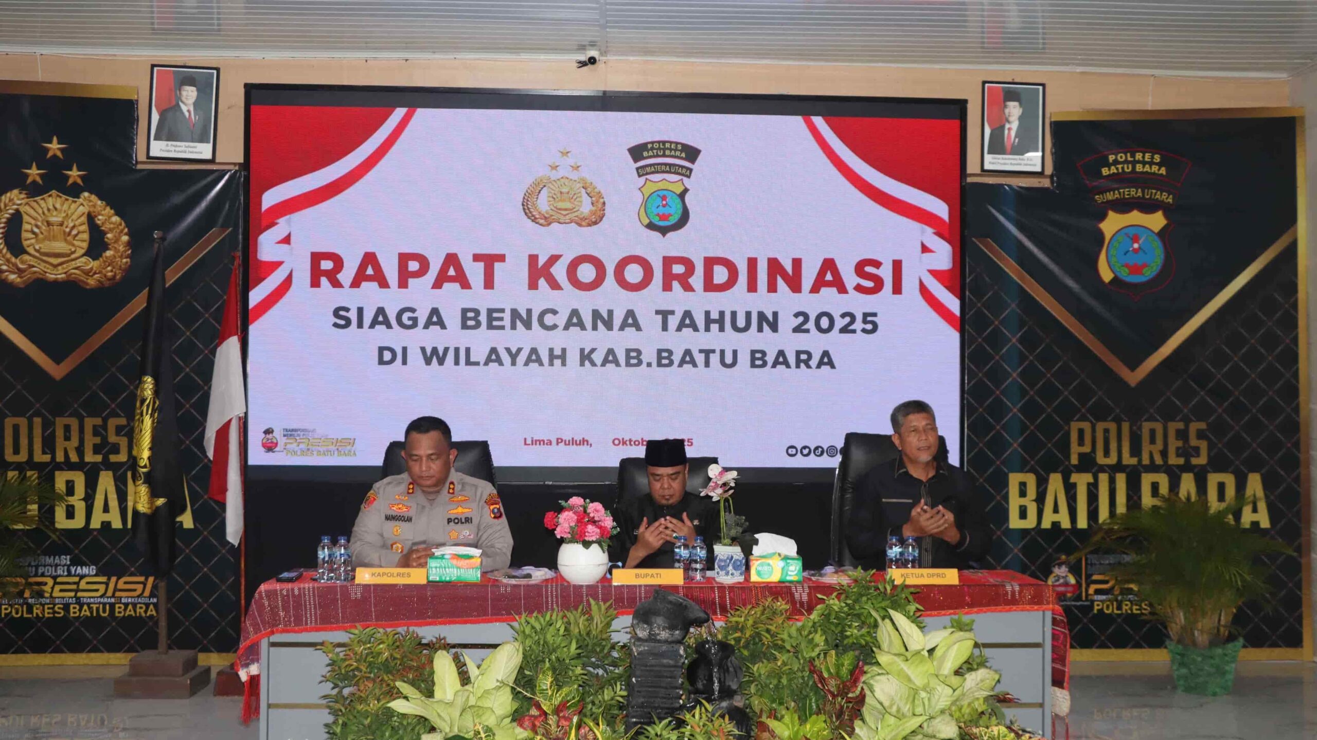 BATUBARA — Menyikapi potensi bencana alam yang kerap terjadi di musim penghujan, Polres Batubara menggelar Rapat Koordinasi Siaga Bencana Tahun 2025 bersama jajaran Forkopimda serta instansi terkait, Jumat (31/10/2025).