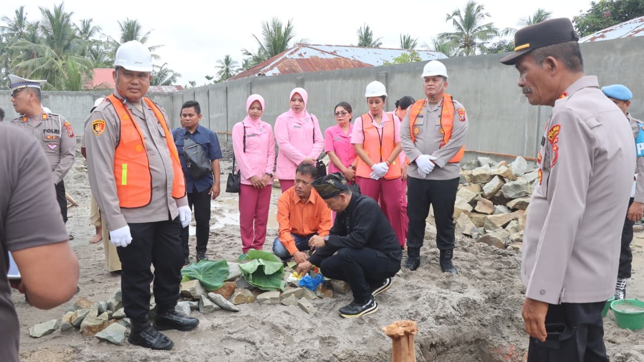 BATUBARA — Kapolres Batubara AKBP Doly Nelson Nainggolan, didampingi Ketua Bhayangkari Cabang Batubara Ny. Stephanie Doly, melaksanakan peletakan batu pertama pembangunan gedung Satuan Pelayanan Pemenuhan Gizi (SPPG) Polres Batubara yang berlokasi di Dusun Pekan, Desa Lalang, Kecamatan Medang Deras, Kabupaten Batubara, Senin (15/12/2025).